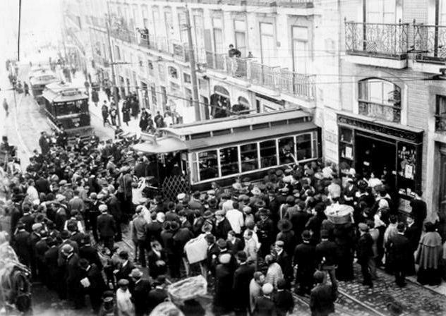 Descarrilamento de eléctrico na Rua da Misericórdia.